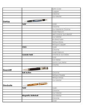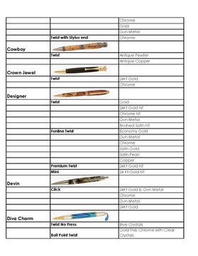 You can customize any pen or pencil with a wide variety of wood or acrylic colors. Many of the choices for pens/pencils and their spools are below. Due to the many choices available, not all pens/pencils and spools are shown. If you don't see what you are looking for please contact us.